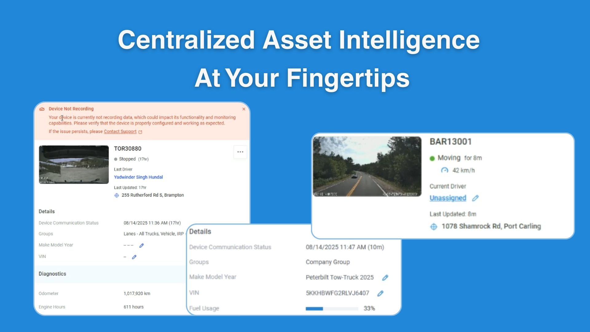 The new Asset Detailed View provides a centralized snapshot of each asset. Instead of navigating through multiple screens, users can now access all critical information about a vehicle or device in a single, streamlined view.