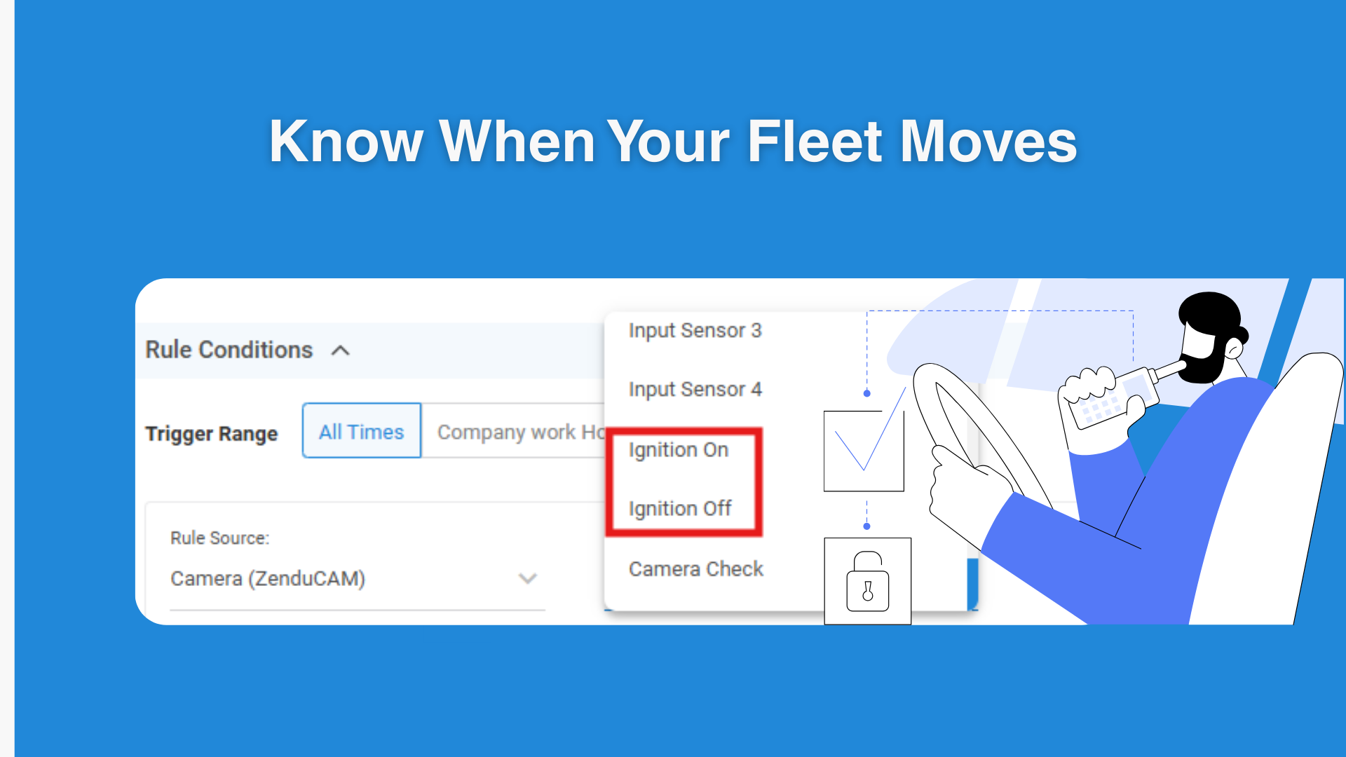ZenCAM now supports Ignition On/Off rules, giving you greater control and visibility into vehicle usage.