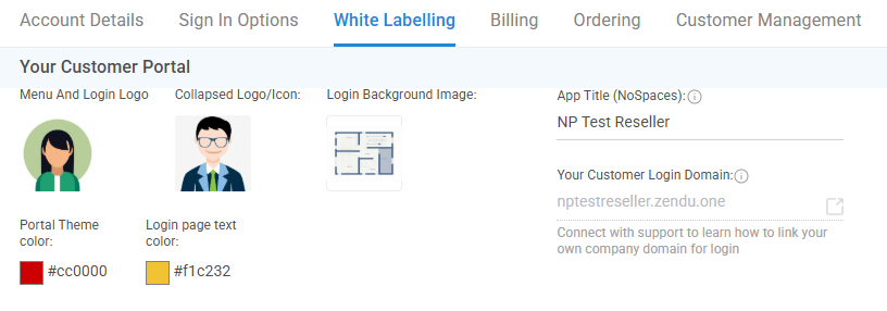 In this section, you can customize the reseller's customer portal with their company's branding.